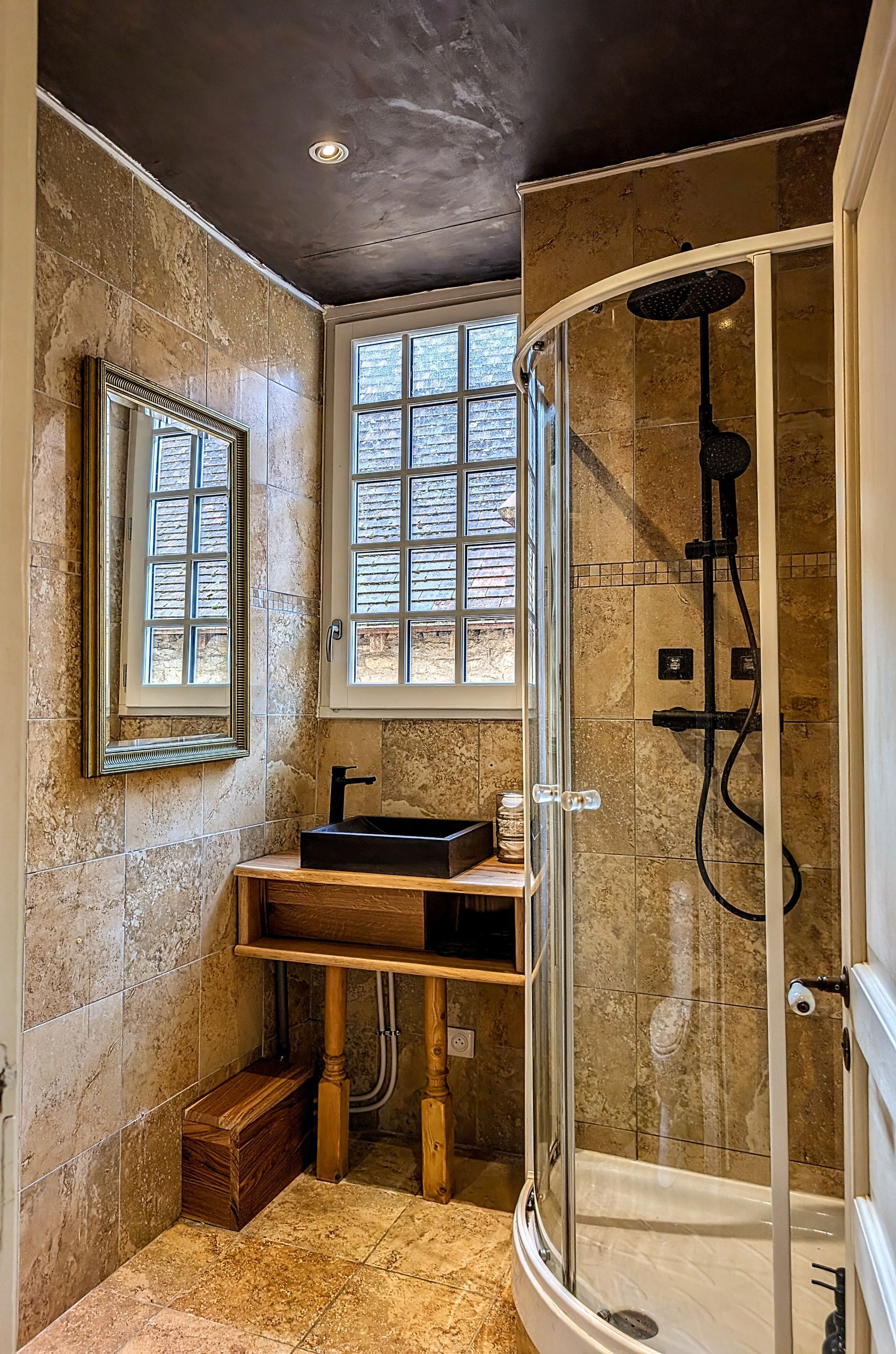 Enjoy a self-catered stay in the entire 5 bedroom/5.5 bathroom home with private courtyard, kitchen, laundry, and grand salon with views of St. Sacerdos Cathedral. Includes entire home: above listed individual rooms of Wisteria, Tapestry, Lanterne, Courtyard, and Montaigne.